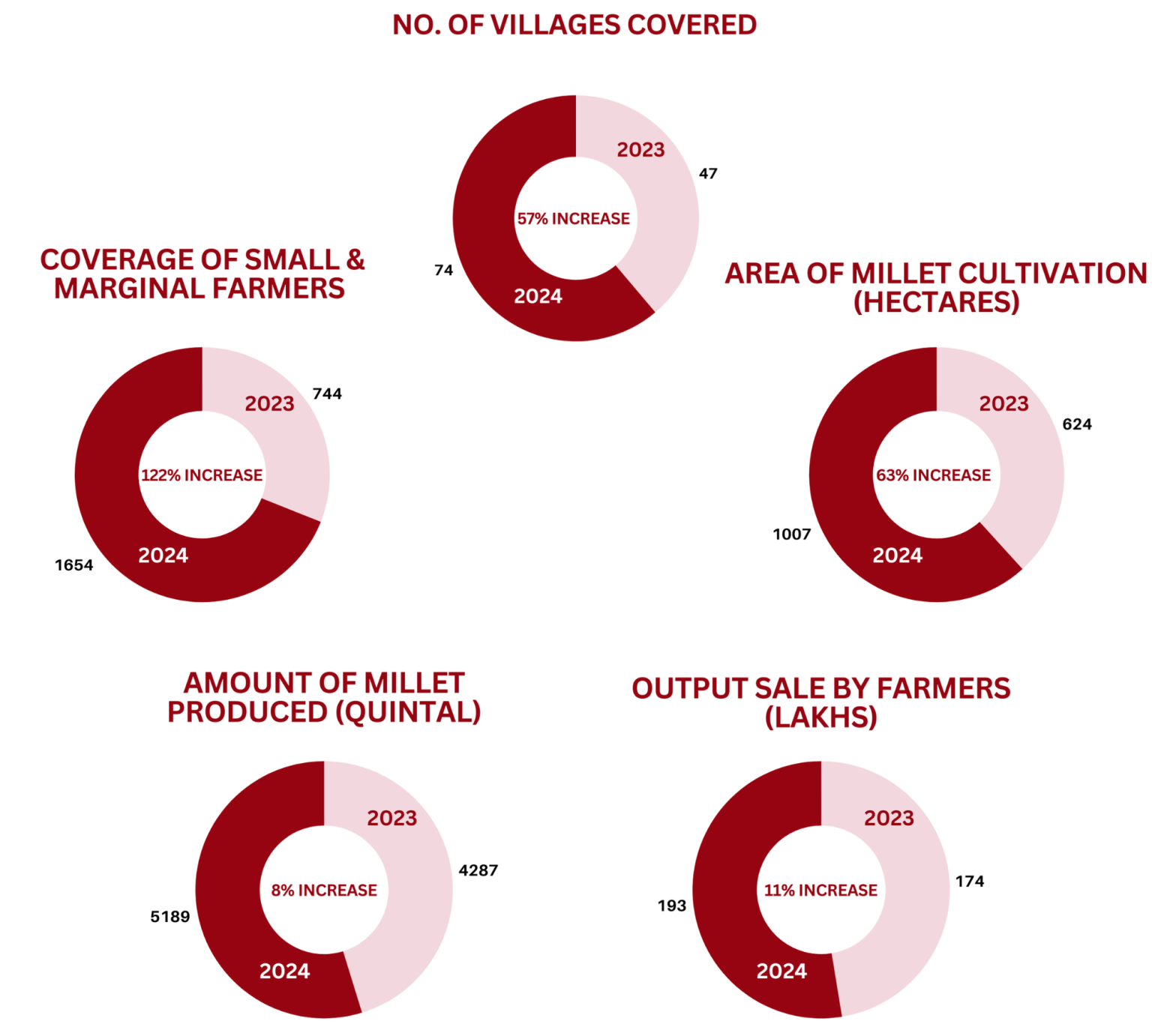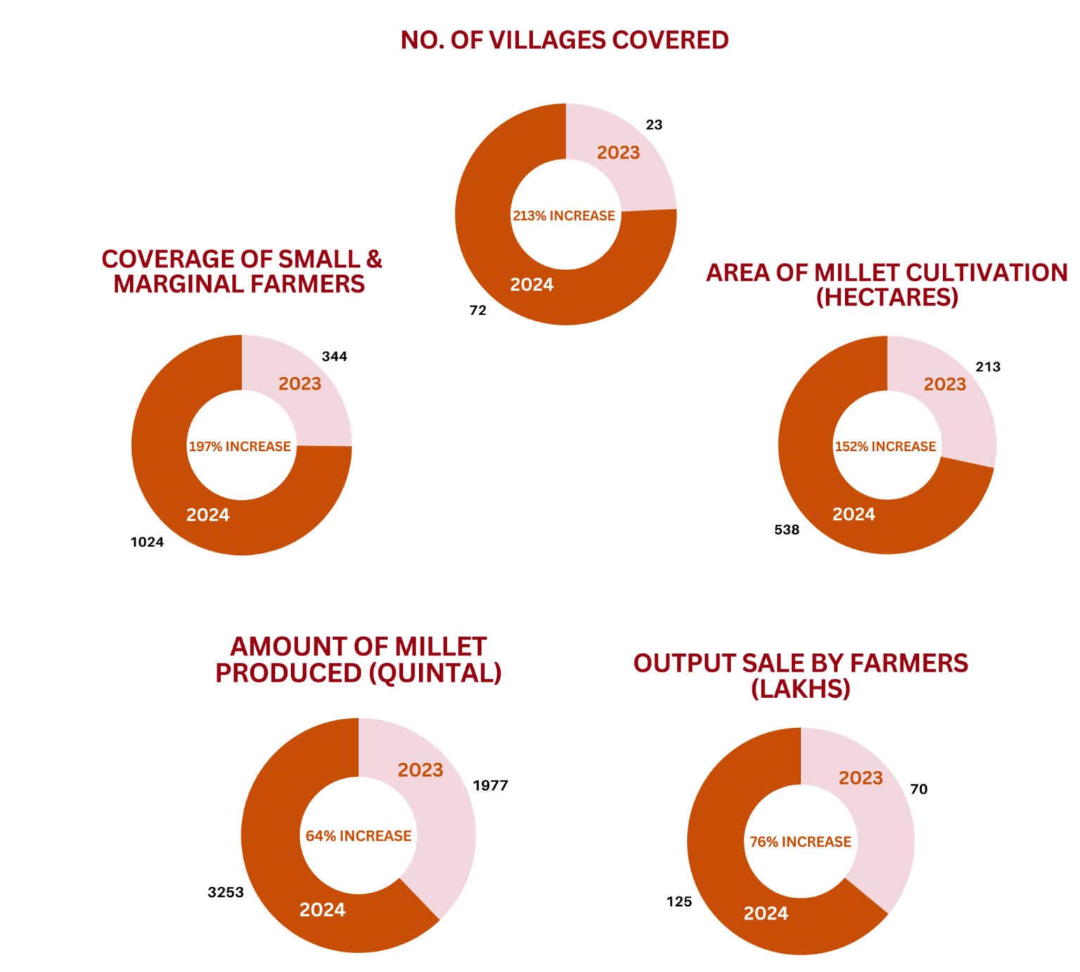 ⦿ 1024 small and marginal farmers cultivation of millets across 538 Ha of land