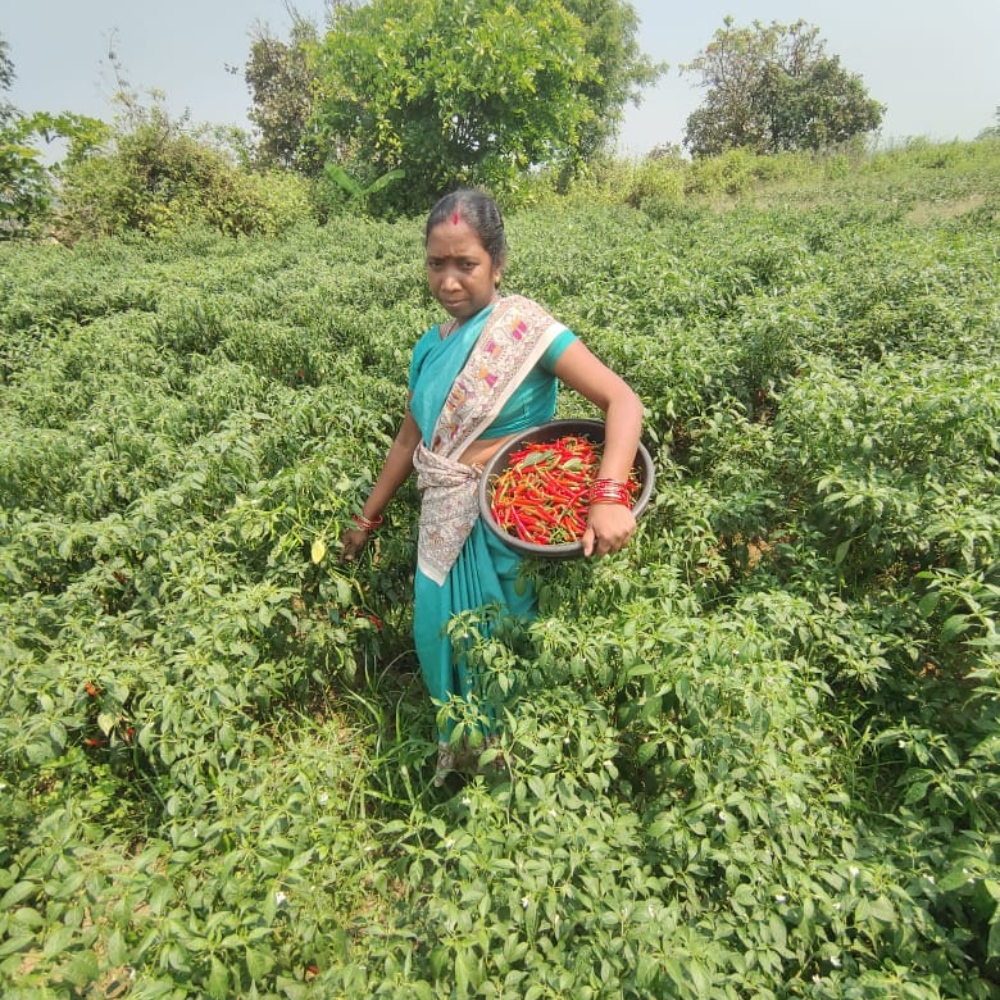 This all changed when Mahashakti Foundation, with the support of HDFC Bank Parivartan, introduced Project Sampurna in Sambalpur. Recognizing Sabita’s potential, she was provided with specialized training and resources to adopt advanced farming practices. Sabita focused on chilli farming and dedicated one acre of her three-acre farm to this crop. With guidance on better cultivation techniques from Project Sampurana team, Agri-Experts of Mahashakti Foundation, and access to improved markets, her efforts began to bear fruit.